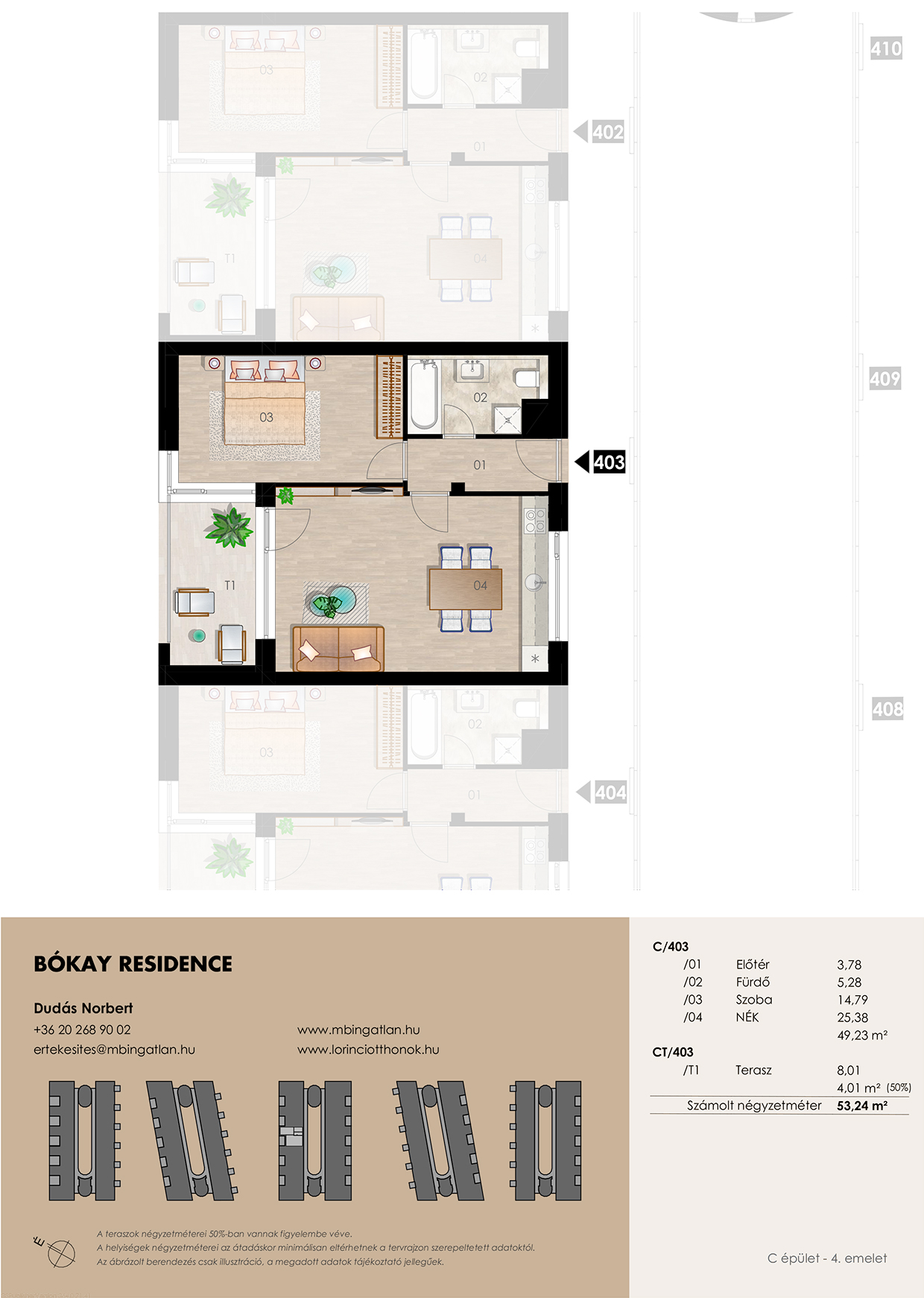 VÉTELÁR: 69,212,000 Ft ÉPÜLET C. EMELET 4. LAKÁSSZÁM 403. LAKÁS ㎡ 49.23 SZOBASZÁM 2 ERKÉLYEK ÖSSZ. ㎡ 8.02 Adatlap PDF Helyiséglista (m²) ElőtérFürdőSzobaKonyhaÉtkezőNappali 3,785,2814,794,802,2818,30 Virtuális választó Kapcsolat Dudás Norbert értékesítési munkatárs +36 20 268 9002ertekesites@mbingatlan.hu