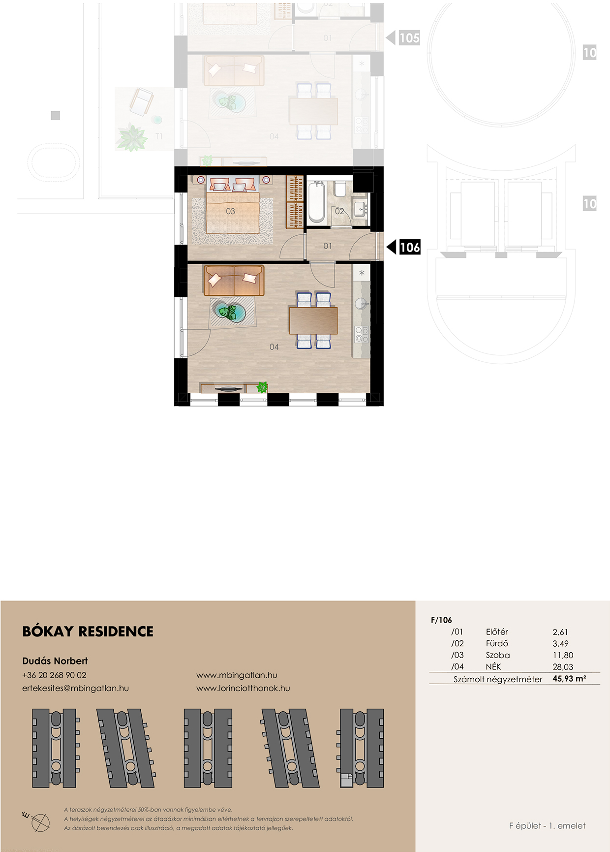 VÉTELÁR: 59,709,000 Ft ÉPÜLET F. EMELET 1. LAKÁSSZÁM 106. LAKÁS ㎡ 45.93 SZOBASZÁM 2 ERKÉLYEK ÖSSZ. ㎡ 0 Adatlap PDF Helyiséglista (m²) ElőtérFürdőSzobaKonyhaÉtkezőNappali 2,613,4911,805,342,2820,41 Virtuális választó Kapcsolat Dudás Norbert értékesítési munkatárs +36 20 268 9002ertekesites@mbingatlan.hu