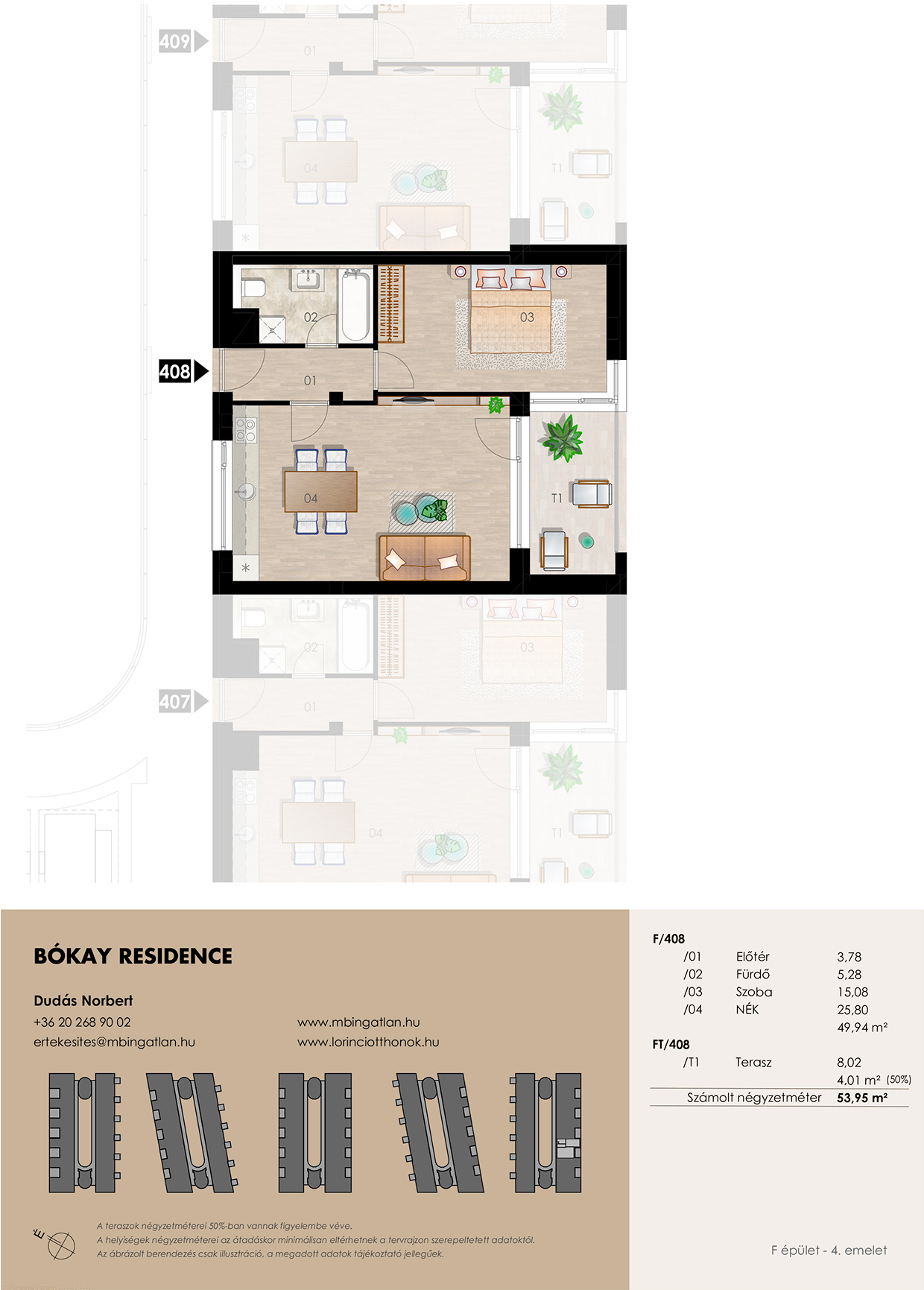 VÉTELÁR: 70,135,000 Ft ÉPÜLET F. EMELET 4. LAKÁSSZÁM 408. LAKÁS ㎡ 49.94 SZOBASZÁM 2 ERKÉLYEK ÖSSZ. ㎡ 8.02 Adatlap PDF Helyiséglista (m²) ElőtérFürdőSzobaKonyhaÉtkezőNappali 3,785,2815,084,802,2818,72 Virtuális választó Kapcsolat Dudás Norbert értékesítési munkatárs +36 20 268 9002ertekesites@mbingatlan.hu